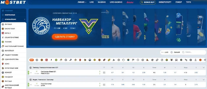 Mostbet uz online: линия ставок на спорт и коэффициенты